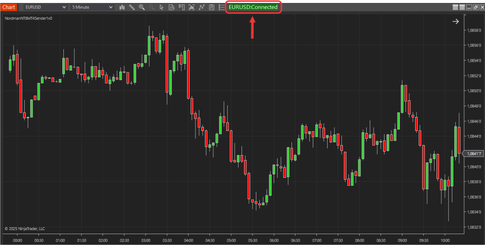 Step 2: Attach the Sender (NinjaTrader Indicator) to the Chart