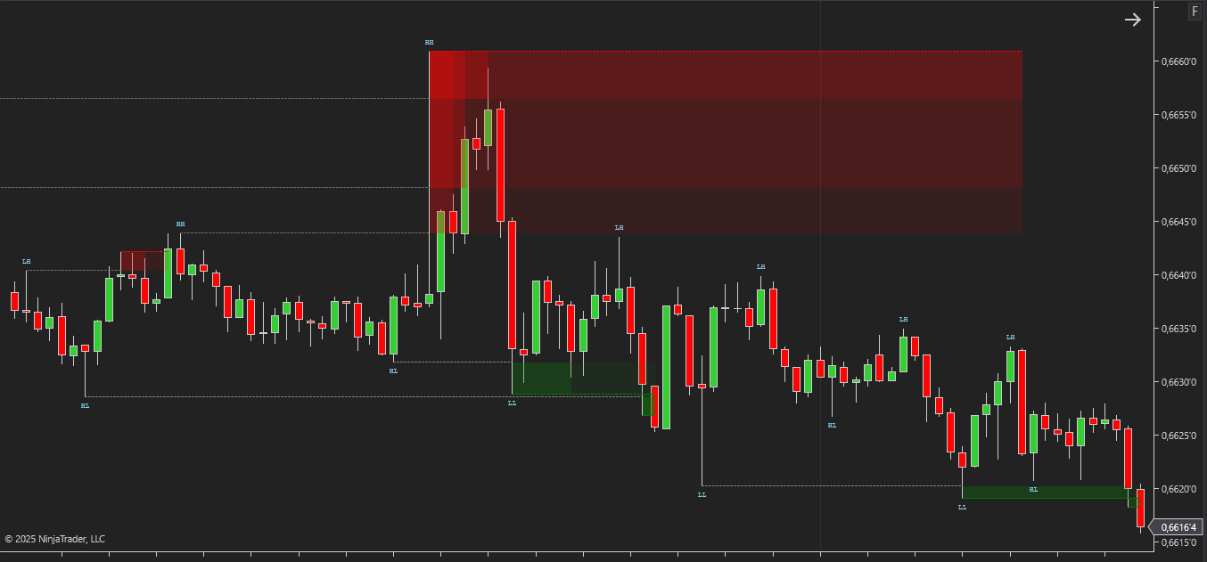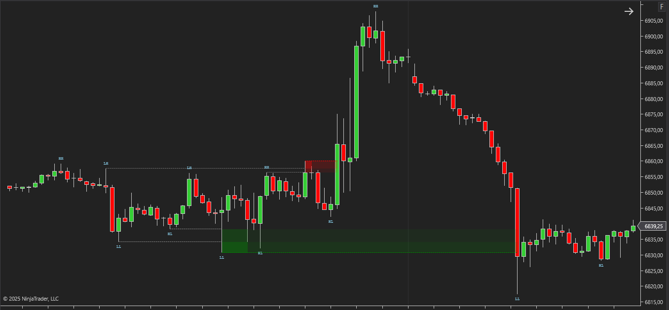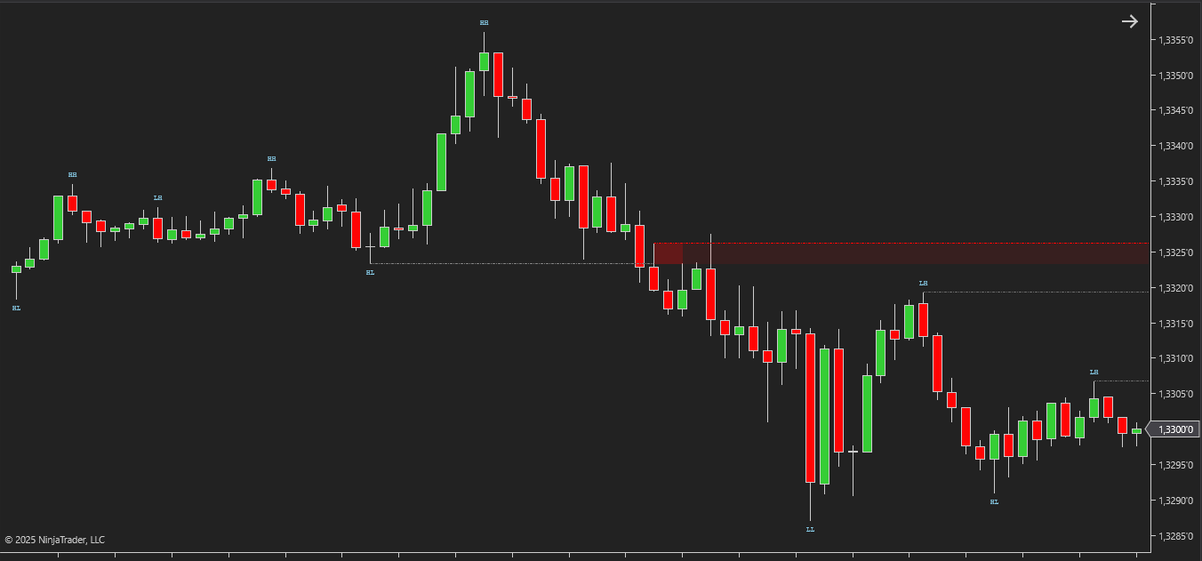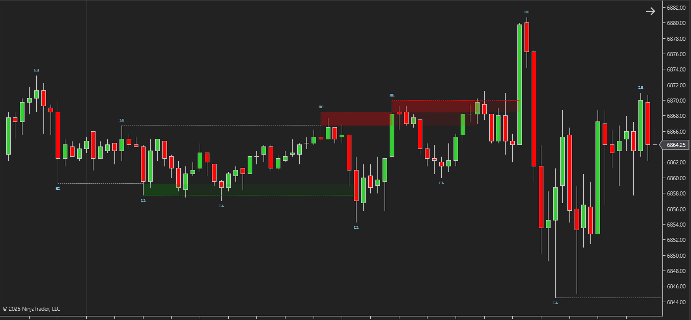 The NinjaTrader Liquidity Sweeps Indicator automates the identification of these events by detecting price movements that sweep prior highs or lows and subsequently fail to hold beyond them. By marking liquidity sweeps directly on the chart, the indicator removes subjective interpretation and provides a consistent framework for analyzing stop runs, failed breakouts, and liquidity-driven market reactions.
